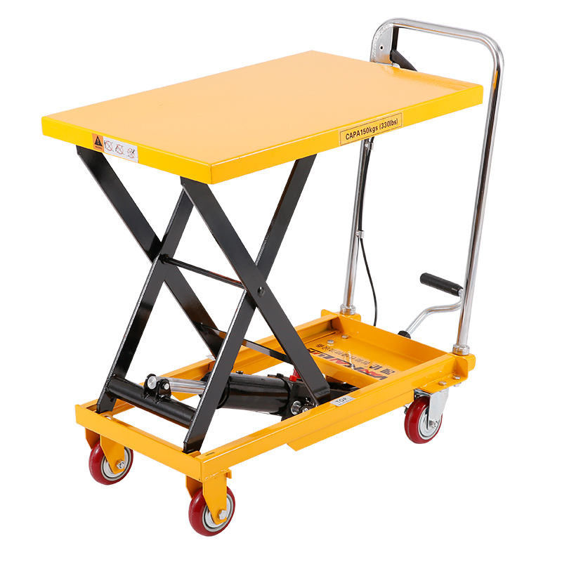 Meja angkat gunting yang dioperasikan secara manual. Duduk di atas dua roda yang dipasang dan dua roda berputar untuk memberikan berbagai gerakan. Juga dilengkapi roda rem untuk mengamankan beban Anda.Tersedia dalam berbagai spesifikasi termasuk kapasitas hingga 2000kg untuk memenuhi kebutuhan individu. overload dan bypass katup dipasang untuk memungkinkan Anda untuk mengontrol kecepatan mengangkat dan menurunkan.