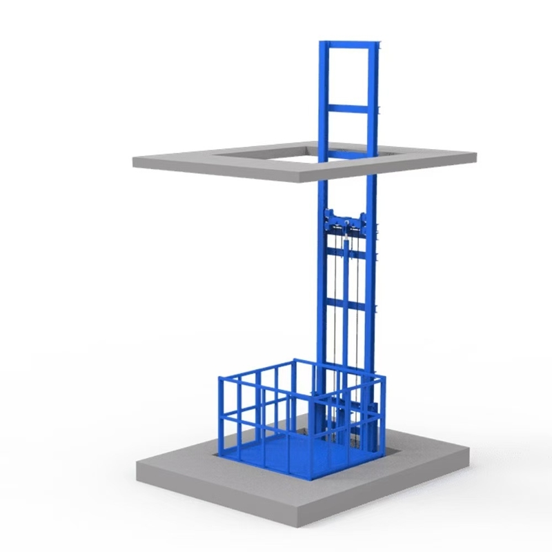 Ketinggian pengangkatan Lift Barang Rel Tunggal berkisar dari 3 meter hingga 10 meter. Spesifikasi khusus lift barang dapat disesuaikan sesuai dengan kebutuhan pengguna, terutama digunakan untuk pengangkutan barang di ketinggian pada jalur perakitan, gudang barang, tempat parkir, dermaga, logistik konstruksi, dll. Sistem pengangkatan lift barang digerakkan oleh stasiun pompa hidrolik, sehingga juga dikenal sebagai platform lift barang pengangkat hidrolik.